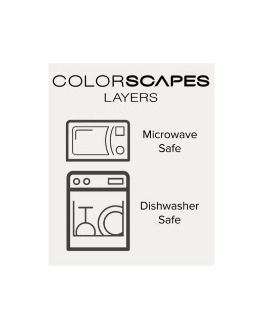 The Colorscapes Layers collection features multiple colors, modern design, product durability. Each piece has a subtle texture of coiling concentric circles. Items include a gradation of color bands in each colorway. All items are crafted in durable white porcelain and are designed for daily use.