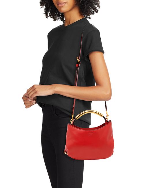 Made in Italy, the Handle Me bag from Moschino is crafted of soft leather and detailed with a discrete stamped logo. This top-handle style is finished with a detachable shoulder strap. Top handle Detachable shoulder strap Leather Made in Italy SIZE About: 7"H x 8"W x 3"D. Handbags - European Collection Hdba > Moschino > Saks Fifth Avenue > Barneys. Moschino. Color: Red.