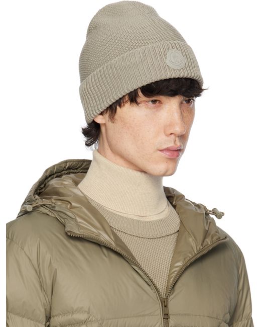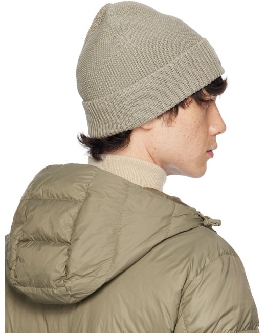 Purl-knit cotton beanie in beige. Rubberized logo patch at rib-knit rolled brim. Supplier color: Sand beige