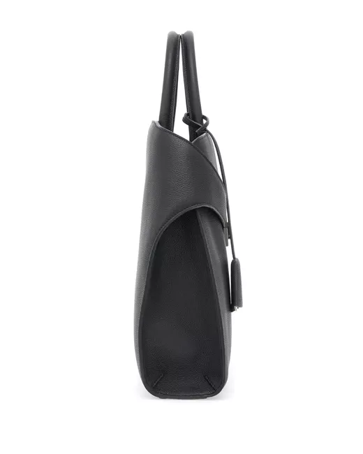black calf leather pebbled texture top zip fastening two rolled top handles adjustable detachable shoulder strap logo stamp to the front Gancini plaque main compartment internal zip-fastening pocket