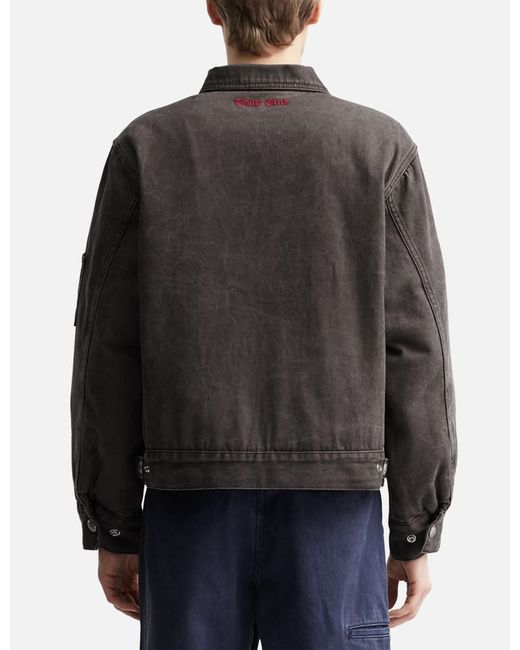 Thug ClubTC Eisenhower JacketThug Club x Dickies collaborative collectionVintage washed cotton denim fabricLightly paddedZip closureEmbroidered logo at front and rear yokeDickies logo above hemTwo front pockets; one interior pocketSnap button cuffsQuilted liningColor: Brown