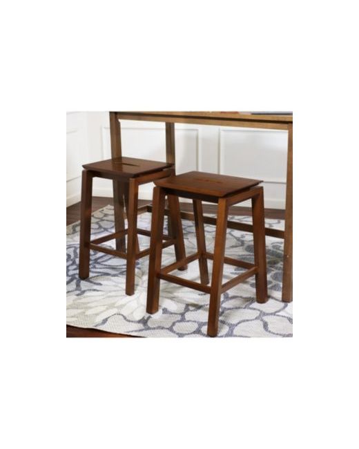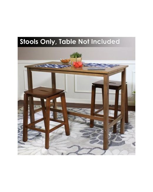 Take a seat at the counter, bar top, or counter-height table on this set of 2 counter-height stools. These backless counter stools are specifically designed to support up to 275 lbs and are made from solid rubberwood with a dark walnut finish. Rubberwood is a durable hardwood that requires little maintenance. Simply spot clean problem areas to refresh the appearance of the furniture and to return it to its original, clean condition. No staining or polishing is required to keep these stools looking pristine. Designed for indoor use only, these dining stools are great for any indoor counter-height seating area, including dining tables and basement bars. These stools can be used at the table full-time, or they can act as extra seating to entertain guests. Stools as stunning as these can also be used in other rooms of the home by creatively using them as plant stands or small tables.