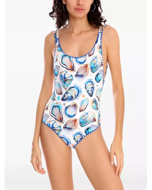 white pull-on style stitched edge scoop neck Be mindful to try on swimwear over your own garments.