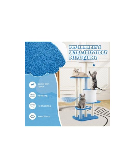 Indulge your furry friends with the cat's dream playground! Wrapped in soft teddy plush fabric, it offers comfortable touch. Moreover, the cat tree contains multiple cozy relaxation spots, including the cat perch, cat condo, and adjustable hammock. Made of pet-safe materials, the natural sisal scratching posts and dangling ball with a bell provide endless entertainment. The cats activity center brings endless fun. The wide, secure platforms let your cat stretch and lounge without worry. Its multi-level design maximizes space for climbing and jumping, saving room in your home.Features:All-in-one cat tree for resting, exercising, observing, and playingSisal scratching posts are made of natural and enduring materialsTeddy plush fabric makes the cat tree comfortable and long-lasting