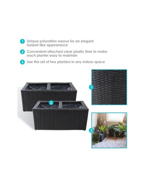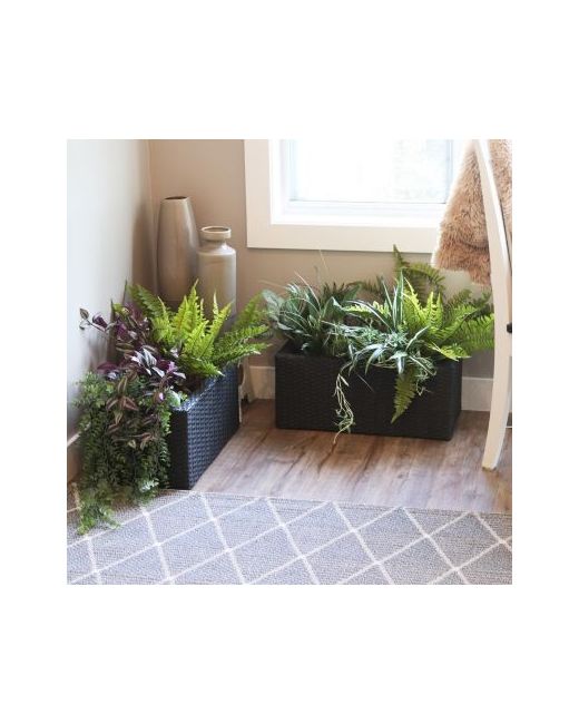 Grow beautiful plants and flowers and display them stylishly indoors with this elegant set of two flower planters. These garden containers are made from durable polypropylene and feature a unique polyrattan basket design that will complement any decor. Unlike real rattan, polyrattan won't chip easily and stays smooth to the touch despite harsh weather conditions. Each box planter has two sections so you can grow two different flowers or plants in the same container. The separated sections make these planters perfect for growing herbs on the kitchen windowsill, so you always have fresh spices on hand. These planters both measure 21.5 inches wide, 9.25 inches tall, and holds up to 8 gallons of soil. Each section of the planter measures 8.5 inches by 11.5 inches. These planters comes in multiple colors so you can get the planters that best match your aesthetic. These unique garden planter boxes are a sophisticated accent for your living room, sunroom, bedroom or entryway.