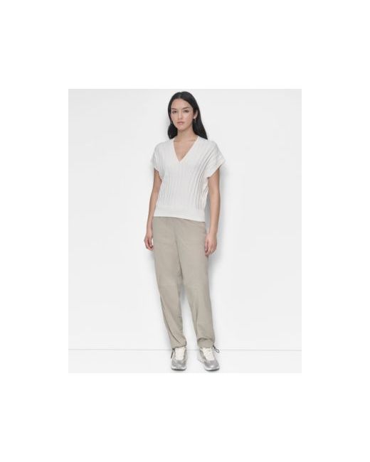 Pair your go-to trousers with this ribbed short-sleeve sweater from Dkny.