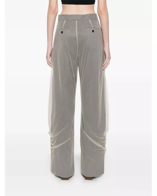 light grey concealed front button, hook and zip fastening belt loops two side inset pockets layered design draped detailing two rear button-fastening pockets
