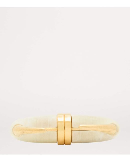 Dip your toe into the Saint Laurent universe with its classic jewellery pieces. This eggshell and gold-tone bangle amps things up with its voluminous proportions and curved lines, while the raised band running through its centre is the closest thing you'll get to ornate detail. The result? A timeless addition to your existing arm candy collection.