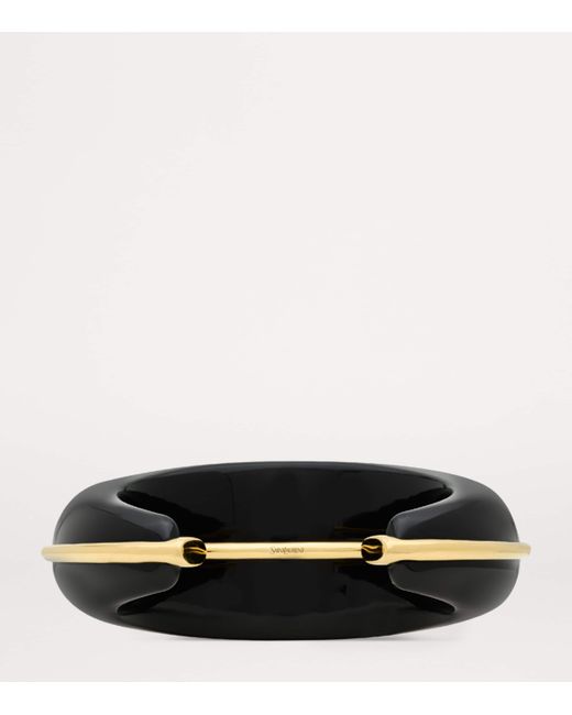 Dip your toe into the Saint Laurent universe with its classic jewellery pieces. This black and gold-tone bangle amps things up with its voluminous proportions and curved lines, while the raised band running through its centre is the closest thing you'll get to ornate detail. The result? A timeless addition to your existing arm candy collection.