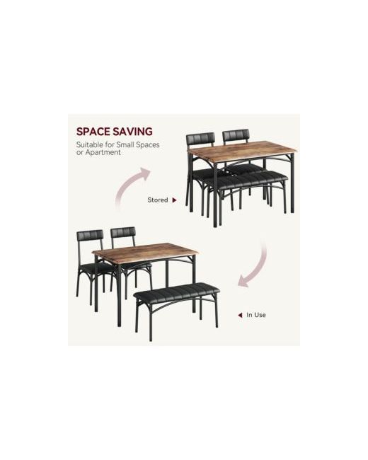 Experience ultimate comfort with the Dining Table Set, crafted from premium Mdf board and solid steel for a sturdy frame that promises a long lifespan. The set includes two upholstered dining chairs and an upgraded dining bench, both padded with thick cushions to ensure your comfort during every meal. Say goodbye to traditional wooden chairs and embrace the enhanced comfort of our curved-shaped design around the desktop.This kitchen table set is built with a strong metal frame that guarantees stability and longevity. Made from premium Mdf and reinforced with thickened steel, this table set is designed to withstand the test of time, making it a reliable addition to your home. Both the chairs and bench can support up to 400 lbs, accommodating friends and family with ease.The two dining chairs conveniently fit underneath the rectangular table, making this set an ideal solution for small spaces such as condos, kitchens, dining rooms, studios, or apartments.