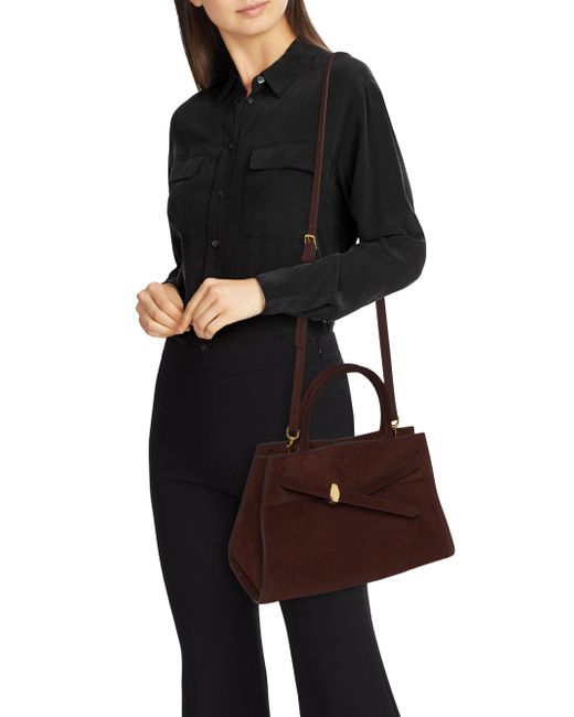 Veronica Beard's Dash bag is a versatile accessory, crafted from leather with a suede finish. This style features a removable and adjustable crossbody strap, making it a practical choice for everyday use. Two top handles Adjustable, removable crossbody strap Magnetic closure Leather Imported SIZE About 13"W x 8.7"H x 5.7"D Two top handles: about 4.7" drop Adjustable, removable crossbody strap: about 22.8" drop. Handbags - Collection Handbags > Veronica Beard > Saks Fifth Avenue > Barneys. Veronica Beard. Color: Chestnut.