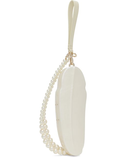 Sculptural hardshell acrylic shoulder bag in off-white. · Detachable beaded faux-pearl crossbody strap · Detachable buffed lambskin wristlet · Logo engraved at back face · Magnetic hinged closure · Faille lining · Logo-engraved gold-tone hardware · H3 x W9 x D1.5 Supplier color: Pearl/Pearl