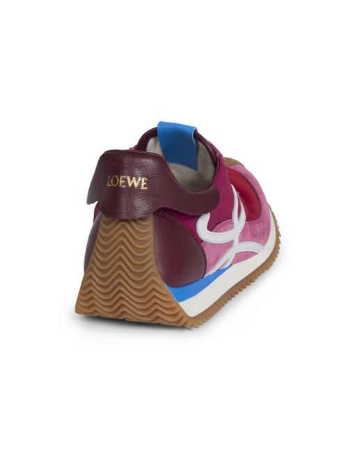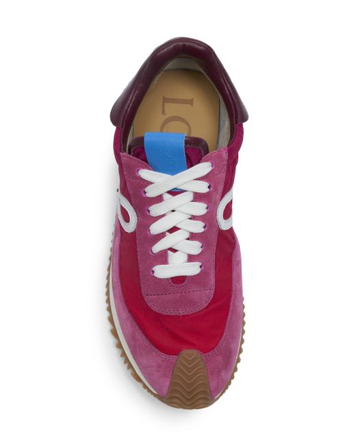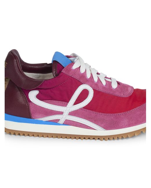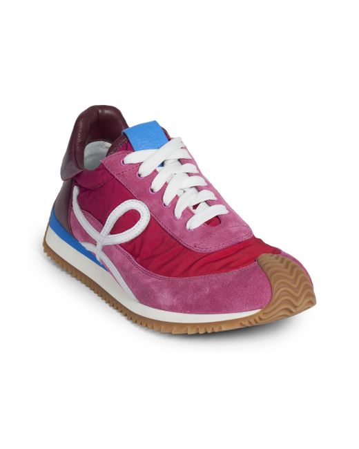 Made in Italy, LOEWE's Flow Runner 2.0 lace-up sneakers are designed with logo lettering at the sides. Round toe Lace-up style Leather/polyester upper Made in Italy. Women's Shoes - French Designer > Loewe > Saks Fifth Avenue > Barneys. LOEWE. Color: Gradient Pink White. Size: 6.