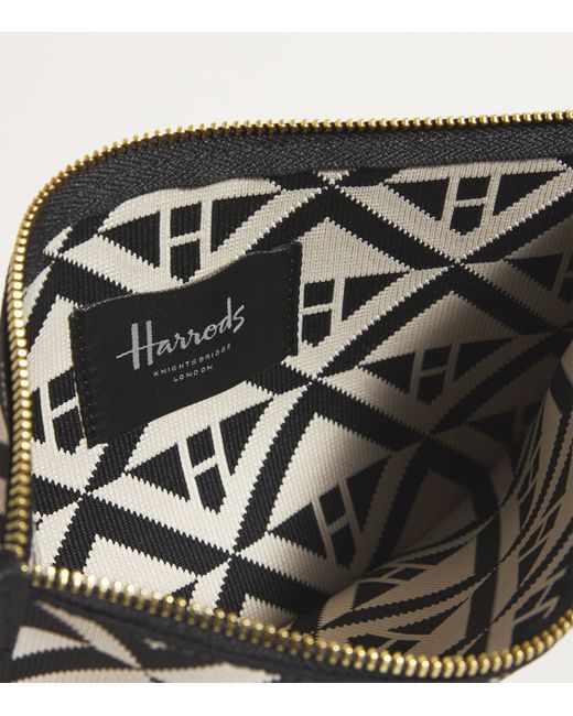 It's not often that we encourage you to cast your eyes down when strolling through our Knightsbridge store, but look to the floor tiles and you may notice the Art Deco Harrods monogram that inspires the design of this pouch. This signature ‘H' pattern is given a new lease of life here in a dynamic monochrome jacquard weave.