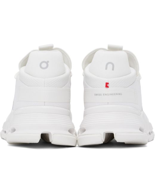 Low-top lightweight knit mesh sneakers in white. · Reflective logo bonded throughout · Lace-up closure · Pull-loop at perforated tongue · Padded collar · Mesh lining · Cushioned Zero-Gravity CloudTec® foam rubber midsole · Treaded Speedboard® rubber sole Supplier color: All white