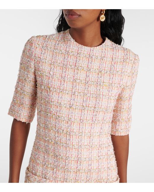 Material: 45% cotton, 21% nylon, 14% viscose, 6% polyester, 4% metallic fibres. Care instructions: specialist clean. Made in Italy. Designer color name: Pastel Pink + White. Lining: 75% acetate, 25% silk. Closure: invisible zipper.