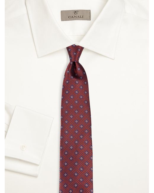 Crafted of woven Italian silk, this timeless necktie from Canali features a decorative medallion pattern. 100% silk Dry clean Made in Italy SIZE About 3.25" W. Men Luxury Coll - Canali Clothing > Canali > Saks Fifth Avenue > Barneys. Canali. Color: Red.