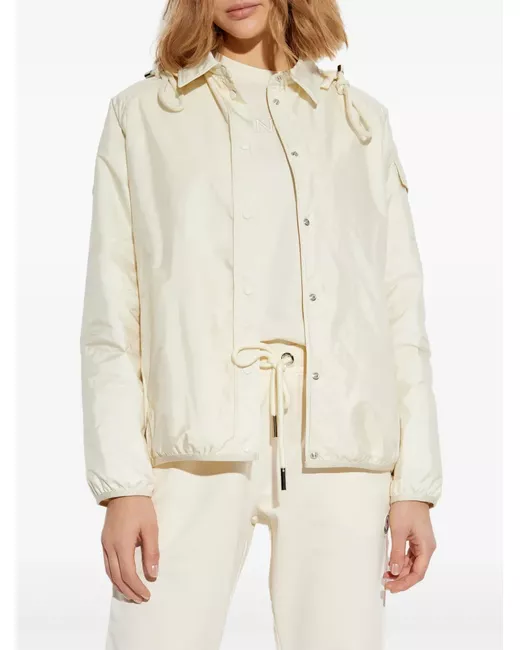 light beige front press-stud fastening drawstring hood chest flap pocket two side slit pockets