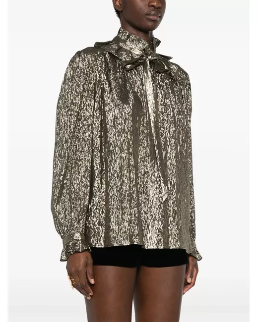 Sash-collar lamé blouse