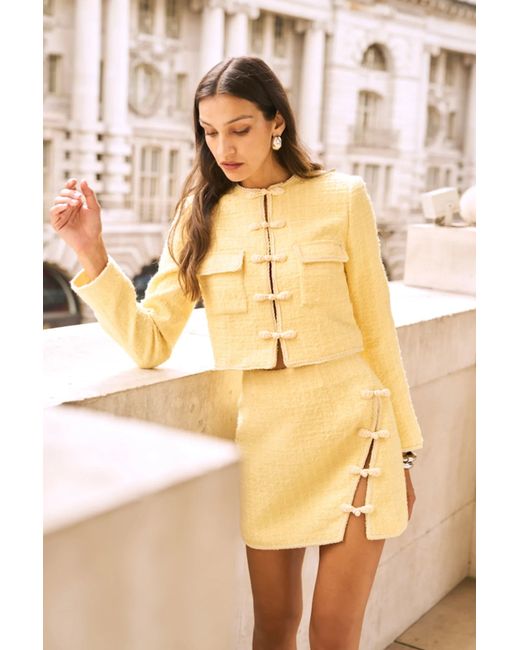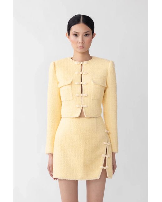 Tweed jacket with rope piping featuring our signature hand-tied pipa knots. Pair with the Ida Tweed Skirt