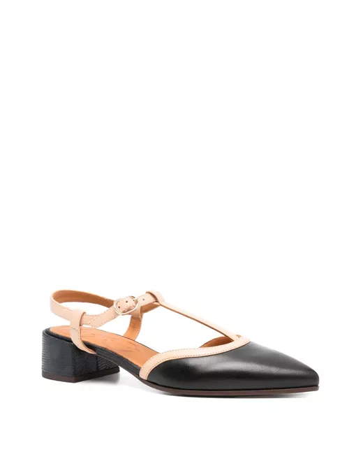 black buckle-fastening ankle strap T-bar strap pointed toe low block heel