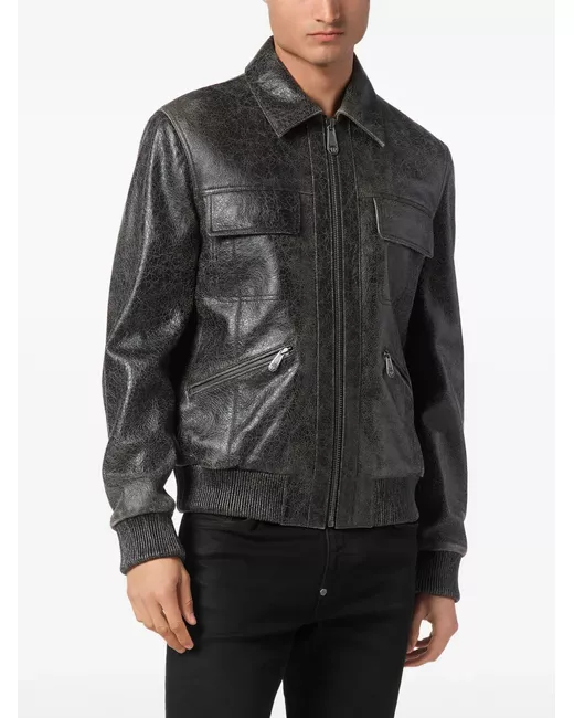 dark grey front zip fastening two chest flap pockets two side zip-fastening pockets elasticated cuffs