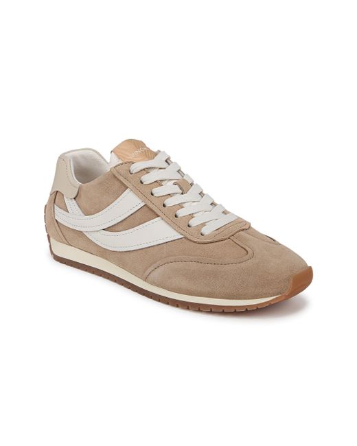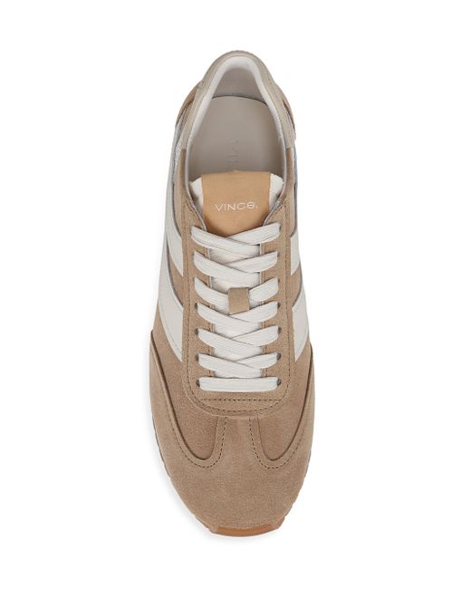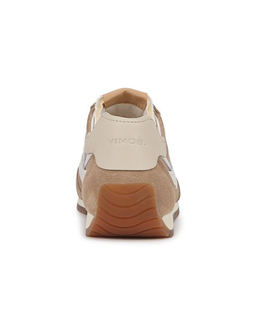 Vince's Oasis Runner sneakers are crafted of leather and suede for a sleek and modern look. A rubber sole provides comfort and durability. Round toe Lace-up style Leather upper Rubber sole Imported Please note: This brand fits slightly larger. Consider ordering half a size down. Women's Shoes - Contemporary Shoes > Vince > Saks Fifth Avenue > Barneys. Vince. Color: Camel White. Size: 5.