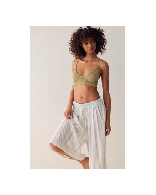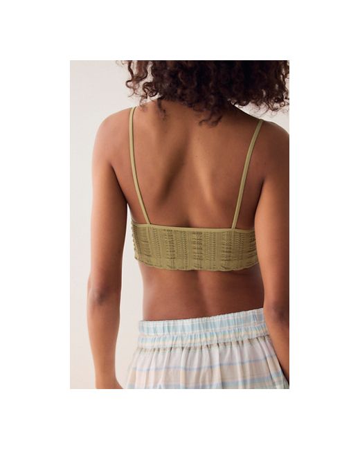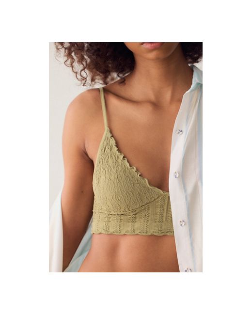 A favorite seamless fabrication gets a textured twist with this longline bralette from Intimately. **Fit:** Bralette style, pull-on design, longline **Features:** Soft, stretchy seamless fabrication, V-neckline, triangle cups, lettuce-edge trim, textured finish, skinny straps **Why We Heirloom Seamless Bralette by Intimately at Free People in Mossstone, Size: XS/S