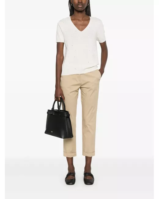 beige concealed front button, hook and zip fastening two side inset pockets two rear welt pockets turn-up cuffs