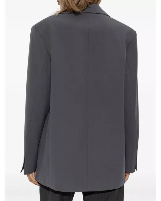 charcoal grey front button fastening two front flap pockets buttoned cuffs notched lapels