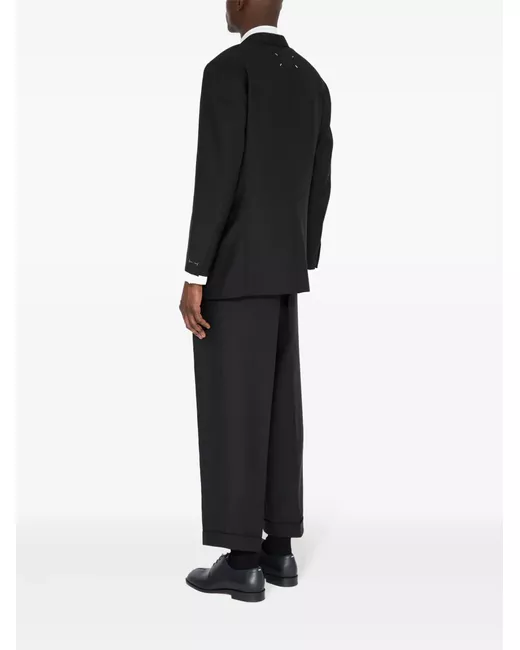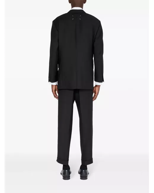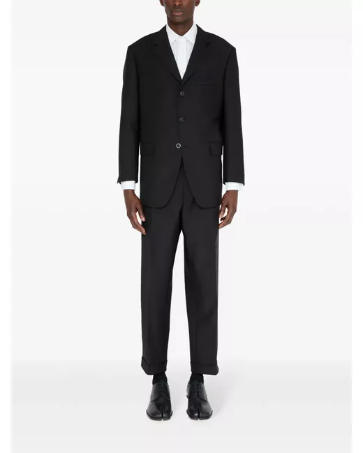 black virgin wool-mohair blend front button fastening notched lapels long sleeves buttoned cuffs two chest welt pockets dart detailing two front flap pockets signature four-stitch logo curved hem When buying this unisex item, keep in mind that it is graded in standard men's sizing.