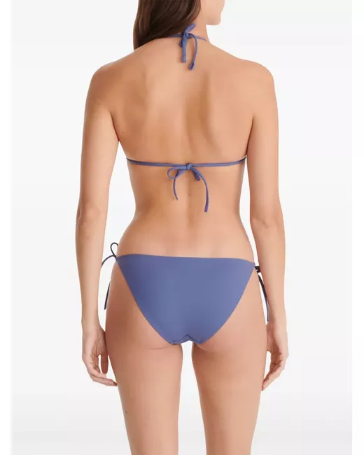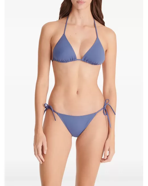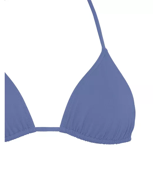 lavender blue stretch-design halterneck triangle cup rear tie fastening adjustable fit Be mindful to try on swimwear over your own garments.