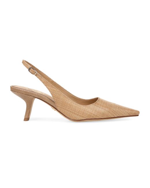 Sam Edelman's Bianka slingback pumps are characterized by sleek lines and slanted heel. This pair features an elegant pointed toe. Point toe Slips on Textile upper Synthetic lining Rubber sole Imported SIZE Slanted heel: about 2.5" (63.5mm). Women's Shoes - Contemporary Shoes > Sam Edelman > Saks Fifth Avenue > Barneys. Sam Edelman. Color: Tan. Size: 10.