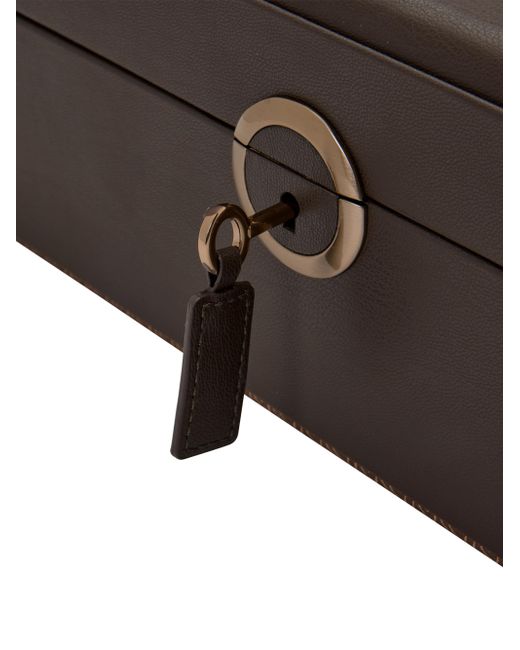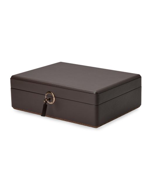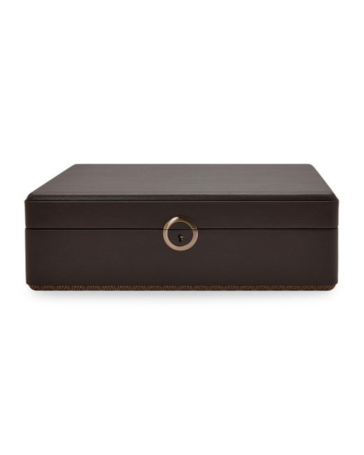 From the Earth Collection. The Earth five-piece watch box from Wolf Designs has a faux leather exterior with metallic hardware and a lock and key. Inside a satin jacquard interior offers storage for five watches on suspended watch cushions to prevent scratching to watch bracelets, a removable tray with compartments for other valuables, and a removable circular zip case. Storage for five watches Removable multiple-compartment accessory tray Removable circular zip case Lock and key closure Faux leather Wipe clean Imported SPECIFICATIONS About 13"W x 9.5"L x 4.25"H. Home - Frames And Leather Acces > Wolf > Saks Fifth Avenue > Barneys. Wolf. Color: Coffee.
