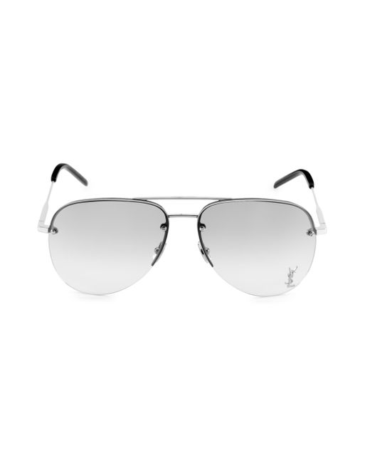 From the Monogram Collection. Iconic classic pilot style animated through a new seasonal color option. Gradient lenses with the YSL logo positioned on the lens. 100% UV protection Gradient lenses Adjustable nose pads Case and cleaning cloth included Metal Made in Italy SIZE 59mm lens width 13mm bridge width 140mm temple length ABOUT THE BRAND French fashion designer Yves Saint Laurent revolutionized 20th-century style when he launched his collection in 1961, merging sleek silhouettes with masterful tailoring. Today, Creative Director Anthony Vaccarello continues the house's legacy with bold accessories, sleek shoes and cool, everyday essentials. Soft Accessories - Men Sunglasses > Saint Laurent > Saks Fifth Avenue > Barneys. Saint Laurent. Color: Silver.