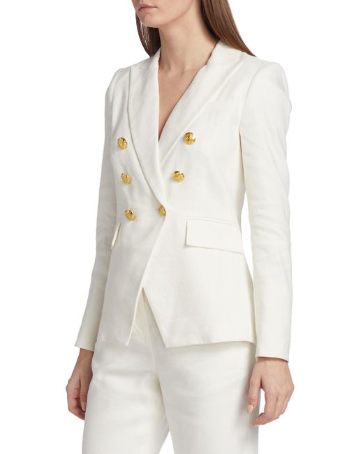 The Miller dickey jacket from Veronica Beard is crafted of linen-blend in a double-breasted silhouette. Peak lapels Long sleeves Waist flap pockets Front button closures 58% linen/27% polyester/14% viscose/1% elastane Dry clean Made in USA SIZE & FIT About 22" from shoulder to hem Model measurements: 5'10" tall Model is wearing a US size 4 ABOUT THE BRAND Veronica Beard was founded by sisters-in-law Veronica Miele Beard and Veronica Swanson Beard in 2010. With a strong belief in enduring personal style, the co-designers focus on elevated everyday pieces, like their signature structured blazers and easy-chic dresses. Contemporary Sportswear - Veronica Beard > Veronica Beard > Saks Fifth Avenue > Barneys. Veronica Beard. Color: White. Size: 0.