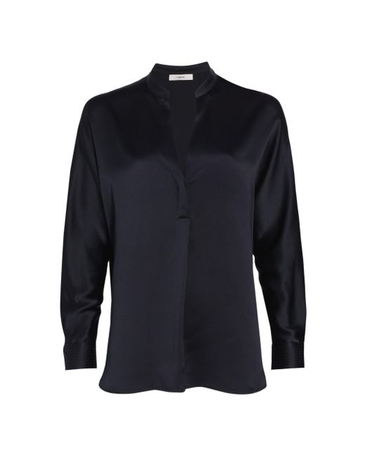Crafted of silk, Vince's blouse is styled with a banded collar, V-neck, and long sleeves. Banded collar V-neck Long sleeves Pull-over style Shirttail hem Silk Hand wash Imported SIZE & FIT About 25" from shoulder to hem Model measurements: 5'10" tall Model is wearing a US size Small. Contemporary Sportswear - Vince > Vince > Saks Fifth Avenue > Barneys. Vince. Color: Coastal. Size: Small.