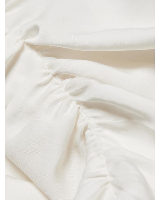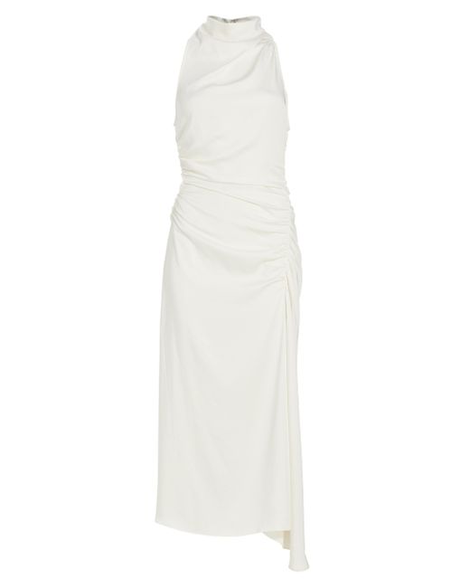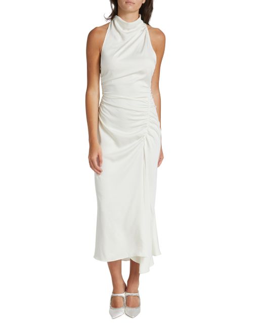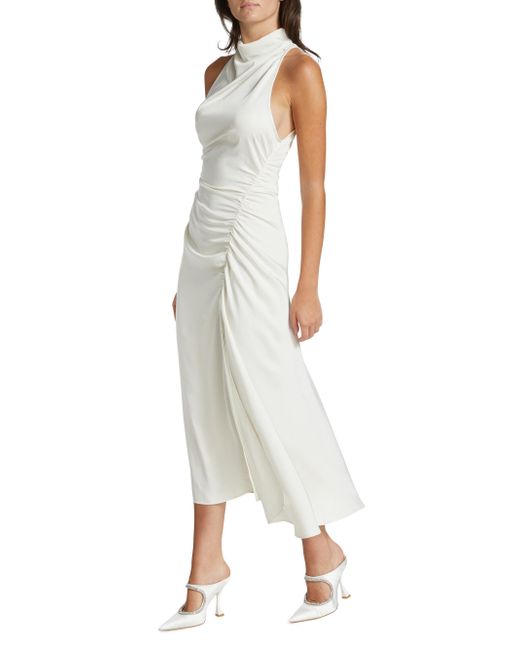 Textured satin strapless dress with sophisticated banded collar, draped down in a ruched seam with side slit. Banded collar Sleeveless Back-zip closure Side slit 100% polyester Dry clean Imported SIZE & FIT Column silhouette About 53" from shoulder to hem Model measurements: 5'10" tall, 32" bust, 24" waist, 35" hips Model is wearing a US size 4 Please Note: This item runs small. ABOUT THE BRAND A born and raised New Yorker, founder Andrea Lieberman kickstarted her fashion career as a celebrity stylist, responsible for some of the most notable A-list red carpet appearances. She launched her line in 2009, based on her experience in making women feel powerful and confident. Her collections repeatedly feature modern tailoring, separates constructed in clean lines and the occasional splash of vibrant colors and patterns. For basic alterations and hemming, book an appointment online at your local Saks Fifth Avenue location. Contemporary Sportswear - Workshop > A.l.c. > Saks Fifth Avenue > Barneys. A.L.C.. Color: Whisper White. Size: 0.