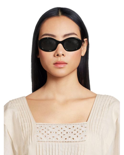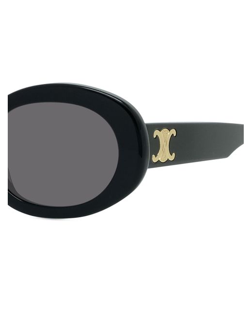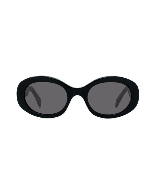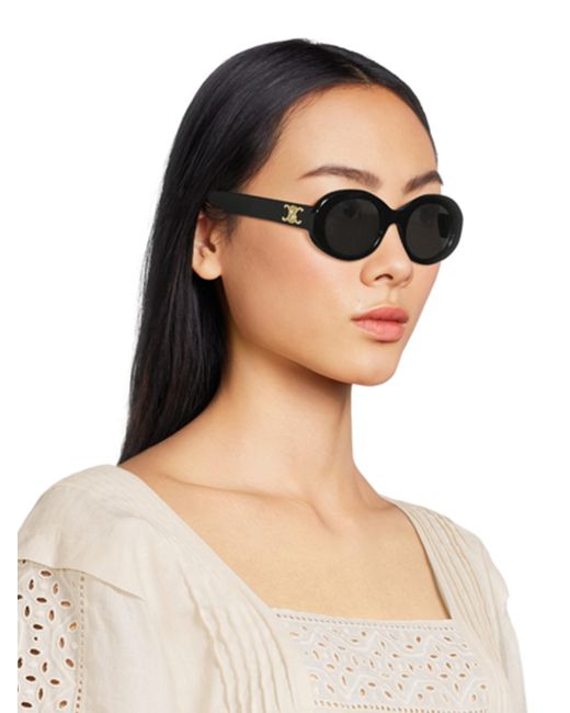From the Triomphe Collection. Celine's Triomphe sunglasses feature shiny acetate construction with a flattering oval silhouette. 100% UV protection Solid lenses Case and cleaning cloth included Acetate Made in Italy SIZE 52mm lens width 22mm bridge width 145mm temple length. Soft Accessories - Sunglasses > Celine > Saks Fifth Avenue > Barneys. CELINE. Color: Black.