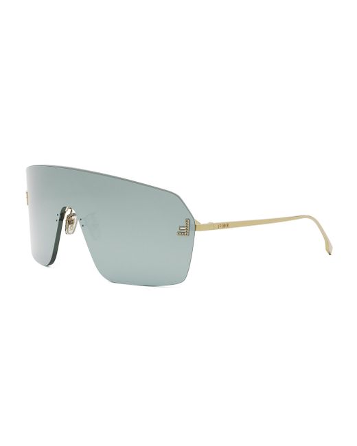 From the Fendi First Collection. Crafted in Italy with shield lenses, these Fendi First sunglasses are finished with crystal-encrusted F's at the temples. 100% UV protection Metal Made in Italy SIZE 120mm temple length ABOUT THE BRAND The epitome of elegance and fine craftsmanship, Fendi was founded in 1925 in Rome by Adele and Edoardo Fendi. Today, Creative Director Kim Jones continues the house's emphasis on quality, tradition, experimentation and creativity. Soft Accessories - Sunglasses > Fendi > Saks Fifth Avenue > Barneys. Fendi. Color: Solid Blue.