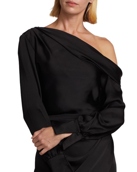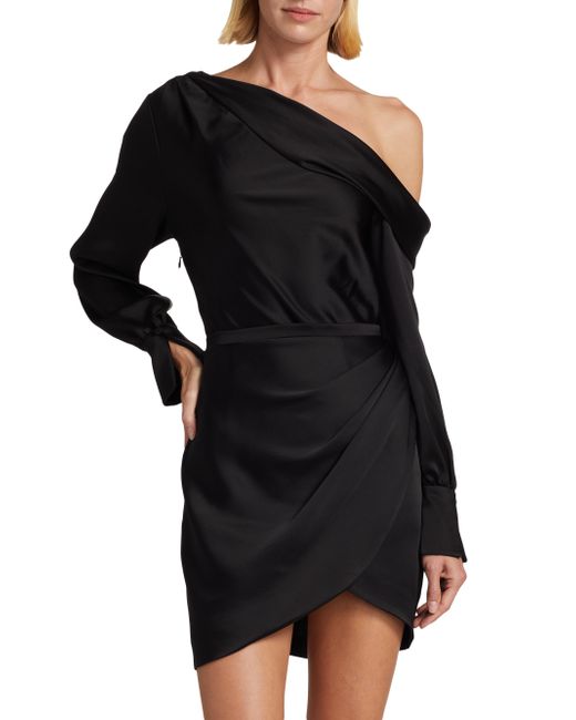 The Cameron minidress by SIMKHAI flaunts a draped asymmetrical neckline and draped detailing at the front. Asymmetrical neck Long sleeves Side zip closure 89% acetate/11% polyester Dry clean Imported SIZE & FIT This style is constructed in a woven, no-stretch fabric for a tailored fit About 35.25'' from shoulder to hem Bust, about 32'' Waist, about 28'' Model measurements: 5'10'' tall Model is wearing US size 4 Please Note: Compared to the Saks Size Guide, this style measures true to size. Contemporary Sportswear - Workshop > Simkhai > Saks Fifth Avenue > Barneys. SIMKHAI. Color: Black. Size: 0.