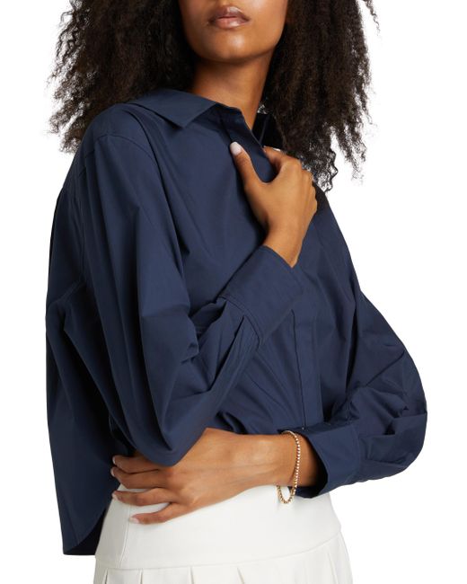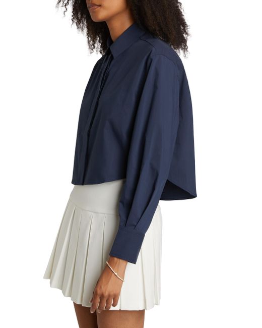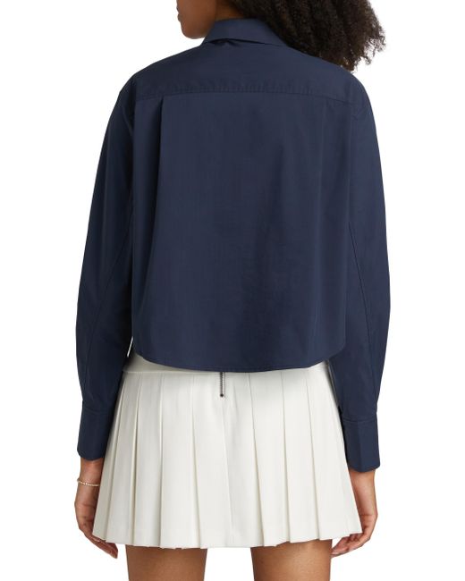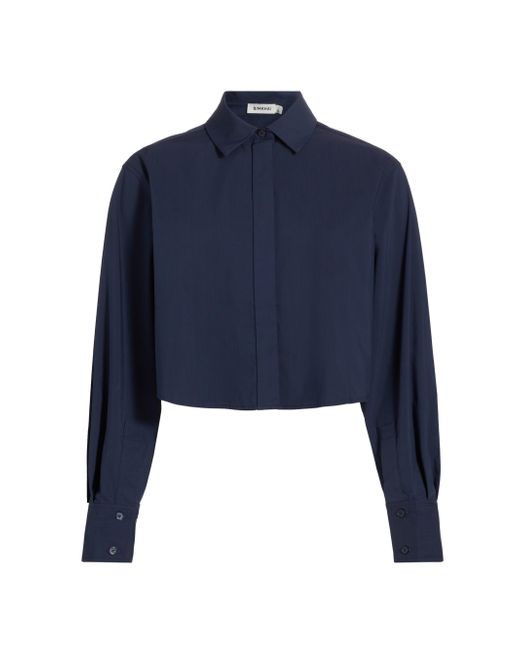 Crafted of a crisp cotton blend, SIMKHAI's classic Rentata shirt showcases a point collar and cropped length. Point collar Long sleeves, button cuffs Concealed button-front placket 63% cotton/37% polyester Dry clean Imported SIZE & FIT This style is designed for a boxy, cropped fit About 20.5" from shoulder to hem Model measurements: 5'10" tall Model is wearing a US size Small. Contemporary Sportswear - Workshop > Simkhai > Saks Fifth Avenue > Barneys. SIMKHAI. Color: Midnight. Size: XL.