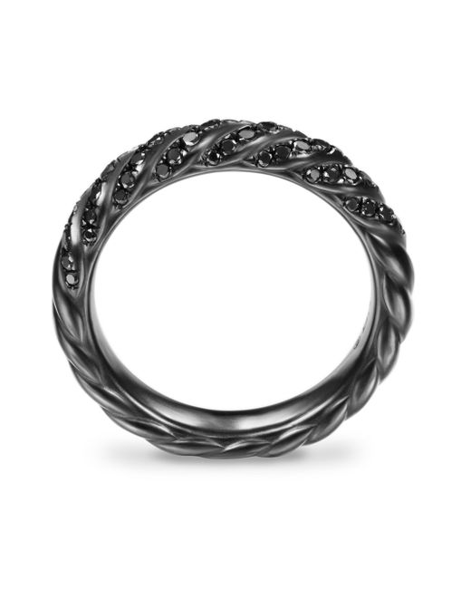 In Sculpted Cable, David Yurman transforms his signature design motif into a carved form. The effect is an entrancing wave like pattern that retains the dimensional look of Cable's original helix. Black titanium Pavé-set black diamonds, 0.40 total carat weight Ring, 4.5mm Imported ABOUT THE BRAND David, a sculptor, and his wife, Sybil, a painter, launched their innovative jewelry brand in 1980 in New York City. Since then, the American design house has pioneered cutting-edge collections - from its iconic combination of sterling silver and diamonds to signature pinky rings. Today, with their son Evan, the Yurmans continue to deliver timeless pieces inspired by nature, art, ancient symbols and Manhattan's stunning architecture. Lsd Jewelry - David Yurman > David Yurman > Saks Fifth Avenue > Barneys. David Yurman. Color: Black Diamond. Size: 4.5.
