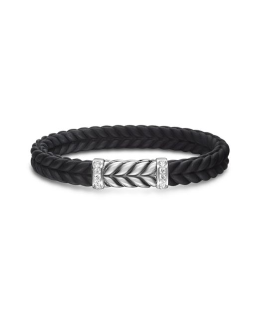 David Yurman skillfully reinterprets chevron-the ancient V-shaped pattern used in architecture and art-in this modern, sculptural collection. Viewed in relation to one another, each half of the motif is a mirror image of Cable. Sterling silver Rubber Pavé-set diamonds, 0.46 total carat weight Bracelet, 9mm Chevron station, 28.3 x 11.5mm Hidden hook clasp Imported ABOUT THE BRAND David, a sculptor, and his wife, Sybil, a painter, launched their innovative jewelry brand in 1980 in New York City. Since then, the American design house has pioneered cutting-edge collections-from its iconic combination of sterling silver and diamonds to signature pinky rings. Today, with their son Evan, the Yurmans continue to deliver timeless pieces inspired by nature, art, ancient symbols and Manhattan's stunning architecture. Lsd Jewelry - David Yurman > David Yurman > Saks Fifth Avenue > Barneys. David Yurman. Color: Diamond. Size: Large.