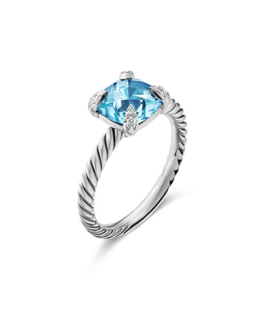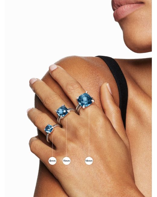 The Chatelaine Collection is a perfect fusion of David and Sybil Yurman's combined art - the marriage of a sculptor and a painter-form and color. Sterling silver Amethyst, 2.00 total carat weight Pavé diamonds, 0.03 total carat weight Gemstone Ring, 8mm Imported. Lsd Jewelry - David Yurman > David Yurman > Saks Fifth Avenue > Barneys. David Yurman. Color: Blue Topaz. Size: 10.