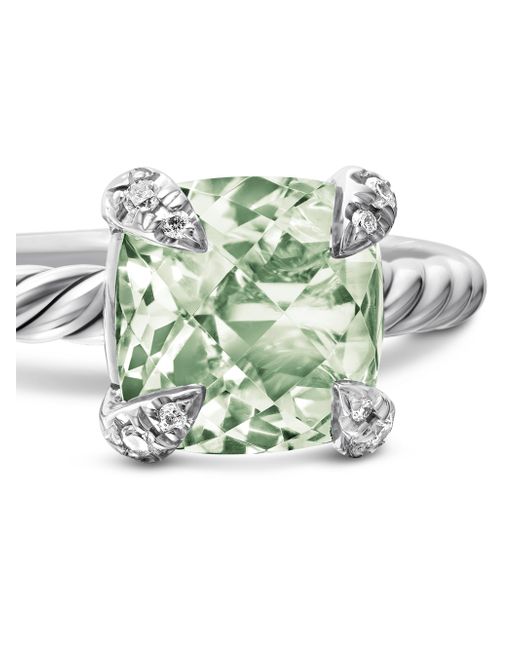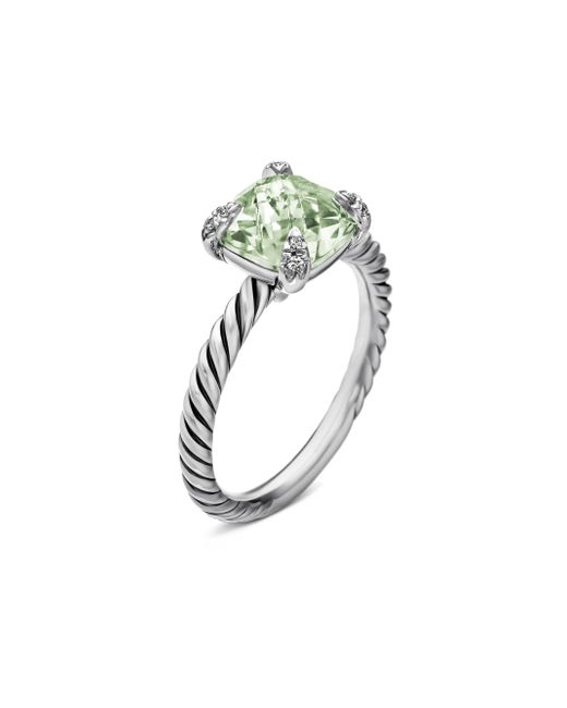The Chatelaine Collection is a perfect fusion of David and Sybil Yurman's combined art - the marriage of a sculptor and a painter-form and color. Sterling silver Amethyst, 2.00 total carat weight Pavé diamonds, 0.03 total carat weight Gemstone Ring, 8mm Imported. Lsd Jewelry - David Yurman > David Yurman > Saks Fifth Avenue > Barneys. David Yurman. Color: Prasiolite. Size: 10.