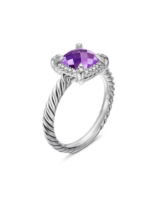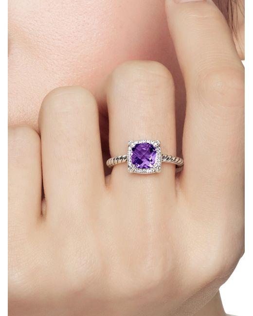 The Chatelaine Collection is a perfect fusion of David and Sybil Yurman's combined art - the marriage of a sculptor and a painter - form and color. Sterling silver Stone, 7mm Pavé diamonds, 0.11 total carat weight Ring, 9.8mm Imported. Lsd Jewelry - David Yurman > David Yurman > Saks Fifth Avenue > Barneys. David Yurman. Color: Amethyst. Size: 4.