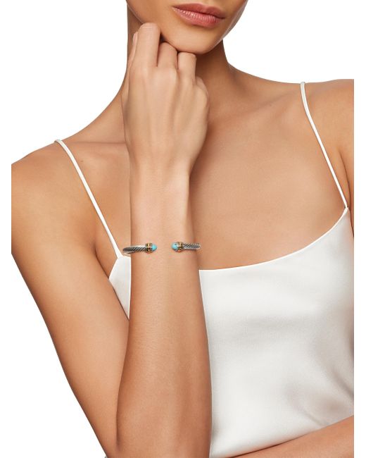 David Yurman's artistic signature, Cable began as a bracelet that he hand-twisted from 50 feet of wire. For the past 30 years, he has evolved the twisted helix into a myriad of designs. Sterling silver and 14-karat yellow gold Bracelet, 5mm Made in Italy SIZE Bracelet, 3mm Extra Small wrist circumference, 5''-5.5'' (12.7-14cm) Small wrist circumference, 5.5''-6.0'' (14-15.2cm) Medium wrist circumference, 6.0''-6.5'' (15.2-16.5cm) Large wrist circumference, 6.5''-7.0'' (16.5-17.8cm) Extra Large wrist circumference, 7.0''-7.5'' (17.8-19cm) Please note: If you are between sizes, please opt for the larger size. Lsd Jewelry - David Yurman > David Yurman > Saks Fifth Avenue > Barneys. David Yurman. Color: Turquoise. Size: XS.