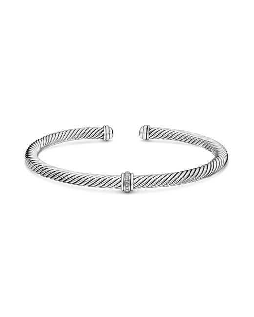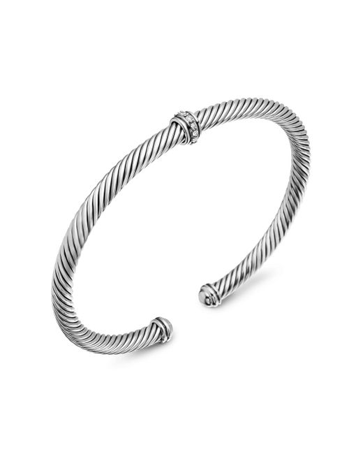 David Yurman's artistic signature, Cable began as a bracelet that he hand-twisted from 50 feet of wire. For the past 30 years, he has evolved the twisted helix into a myriad of designs. Sterling silver Pavé diamonds, 0.07 total carat weight Bracelet, 4mm Made in USA SIZE Bracelet, 3mm Extra Small wrist circumference, 5''-5.5'' (12.7-14cm) Small wrist circumference, 5.5''-6.0'' (14-15.2cm) Medium wrist circumference, 6.0''-6.5'' (15.2-16.5cm) Large wrist circumference, 6.5''-7.0'' (16.5-17.8cm) Extra Large wrist circumference, 7.0''-7.5'' (17.8-19cm) Please note: If you are between sizes, please opt for the larger size. Lsd Jewelry - David Yurman > David Yurman > Saks Fifth Avenue > Barneys. David Yurman. Color: Sterling Silver. Size: XL.