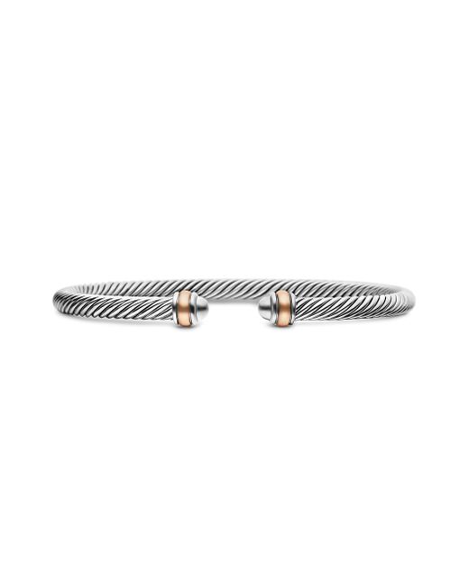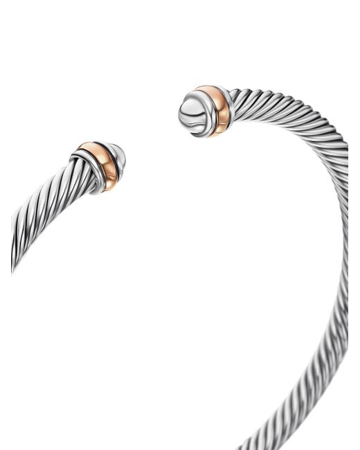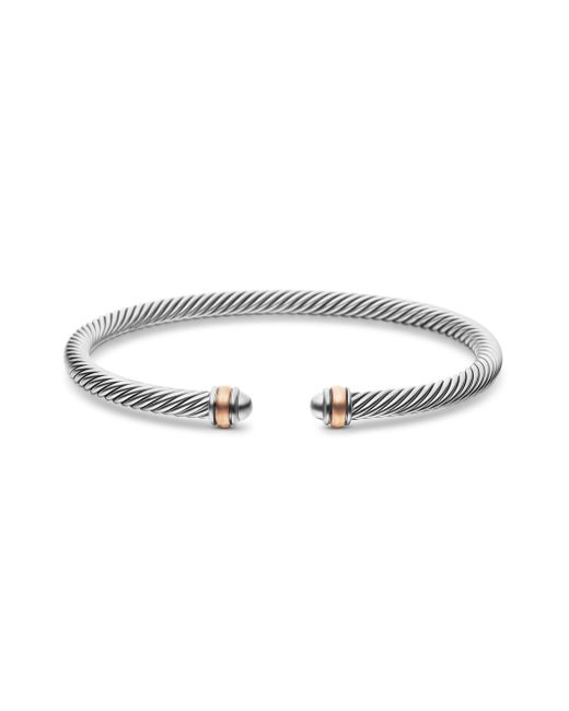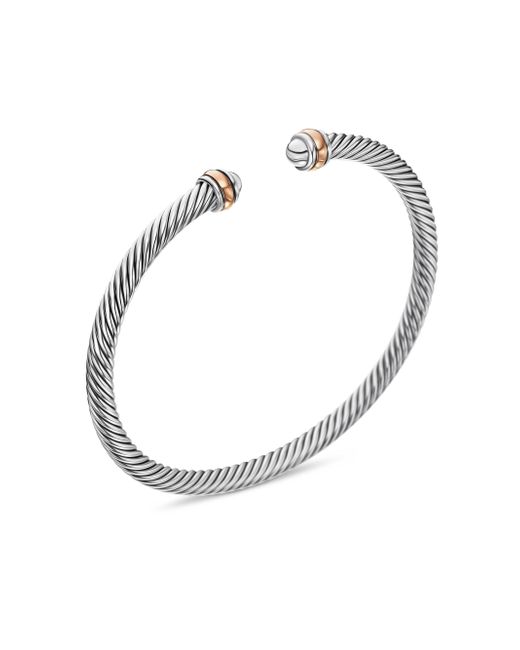 David Yurman's artistic signature, Cable began as a bracelet that he hand-twisted from 50 feet of wire. For the past 30 years, he has evolved the twisted helix into a myriad of designs. Sterling silver with 18-karat rose gold Bracelet, 4mm SIZE Bracelet, 3mm Extra Small wrist circumference, 5''-5.5'' (12.7-14cm) Small wrist circumference, 5.5''-6.0'' (14-15.2cm) Medium wrist circumference, 6.0''-6.5'' (15.2-16.5cm) Large wrist circumference, 6.5''-7.0'' (16.5-17.8cm) Extra Large wrist circumference, 7.0''-7.5'' (17.8-19cm) Please note: If you are between sizes, please opt for the larger size. Lsd Jewelry - David Yurman > David Yurman > Saks Fifth Avenue > Barneys. David Yurman. Color: Silver. Size: XS.